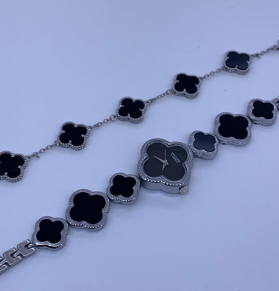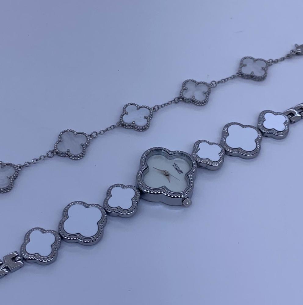 مواصفات ساعة ماركة فان كليف مع اسوارة:تمتاز ساعة فان كليف مع اسوارة بالتصمييم المميز والفريد والجودة العالية والاناقة التي لا مثيل لها:لون السوار: متنوع.اللون الداخلي: متنوع.الخامة : معدنلون العقارب: فضي وذهبي.*تاتي بتغليف انيق مناسب للاهداء.