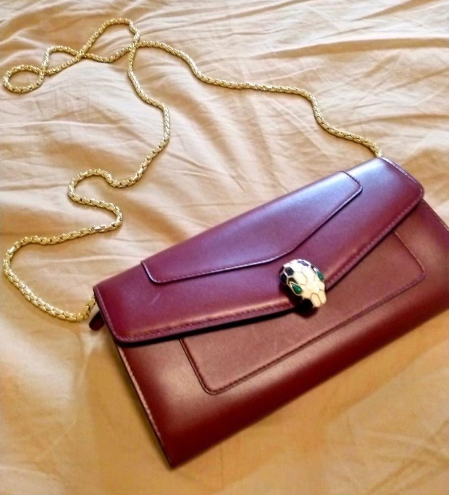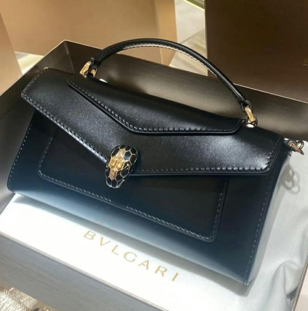 حقيبة كتف بولغري, الخامة جلد, وهي تمثل أيقونة كلاسيكية بترجمة عصرية منمنمة تماشي آخر صيحات الموضة. تضفي لمسة عصرية على كل أساليب الأناقة النهارية وتزينها سلسلتان تستحضران وقابلتان للفصل , تلائم أساليب الحمل المتعددة. ويتوج الحقيبة قفل مغناطيسي أيقوني بشكل رأس ثعبان استوحيت حراشفه الآسرة وتصميمه من مجوهرات «سيربنتي» ترجع إلى حقبة الستينيات.